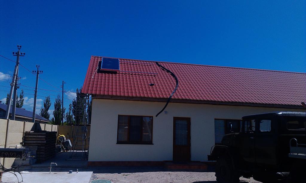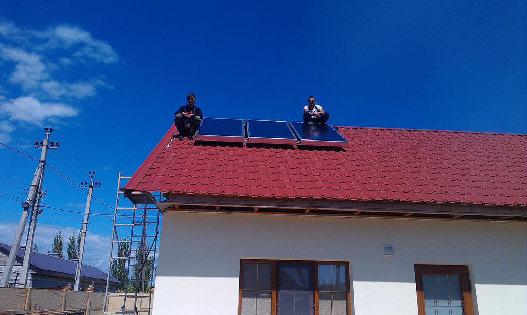 Компания «Энергосейв системс» установила в г.Бердянске круглогодичную систему солнечного водоснабжения для мини-гостинницы на 530 литров воды. Гелиосистема работает на плоских солнечных коллекторах Hewalex (Польша). Нагревает 530 литров холодной воды до температуры около 30-35 градусов при низкой солнечной активности, и около 75 градусов при высокой солнечной активности. Гелиоколлекторная установка работает у нас 2-й месяц и полностью нас удовлетворяет. Это существенная экономия на подогреве воды. Всё оборудование с установкой составило около 3000 долларов. Качество оборудования высокое,все знакомым рекомендуем устанавливать подобные системы. Установка системы занимает 1-3 дня, в зависимости от сложности работы, так как архитектура, особенности строений и крыш у всех разные. В целом, эффективностью системы на сегодняшний день полностью удовлетворены. Спасибо компании! Василий +38(098)812-59-80
